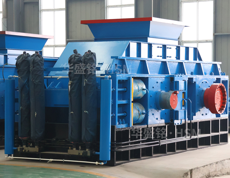 對輥破碎機是利用兩組單獨傳動的輥軸,相對旋轉產生的擠軋和磨剪力來破碎物料。物料經給料口落入兩輥之間,經對輥擠壓破碎之后成品自然落下,當遇到過硬或者不可破碎的物料時,輥子可憑液壓缸或彈簧的作用自動退讓,使雙輥之間的間隙增大,過硬或不可破碎的物料自然落下,以此來保證機器不被損壞,相向轉動的兩個輥子可以調節液壓缸或彈簧的壓力來控制產品的出料粒度。鞏義市華盛銘重工機械廠根據每個客戶的實際情況,設備分為高配,普配,低配三種類型,客戶可以根據自己的實際情況讓銷售經理推薦適合自己的產品類型和性能